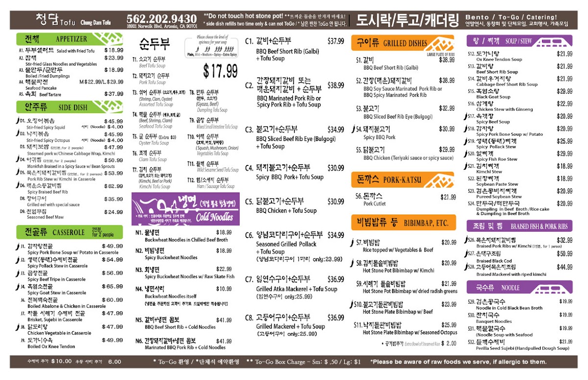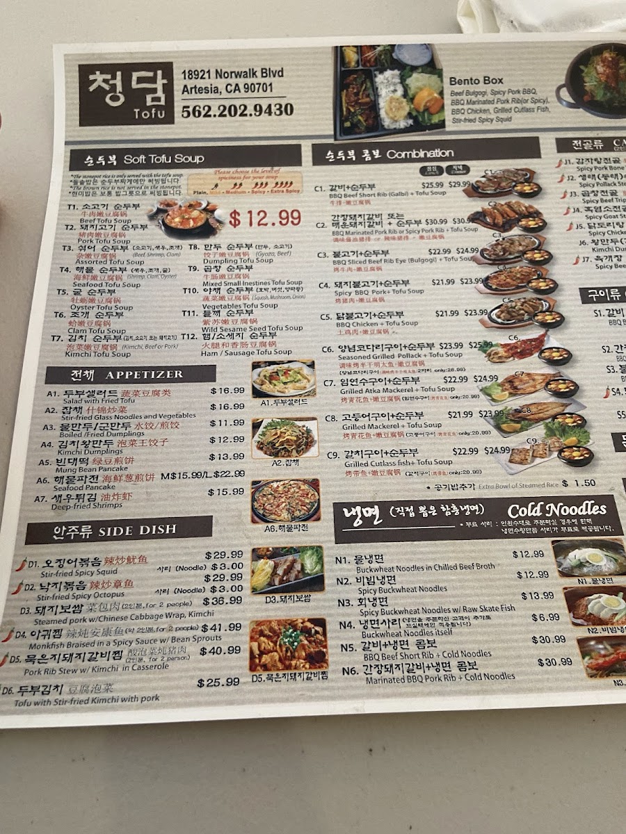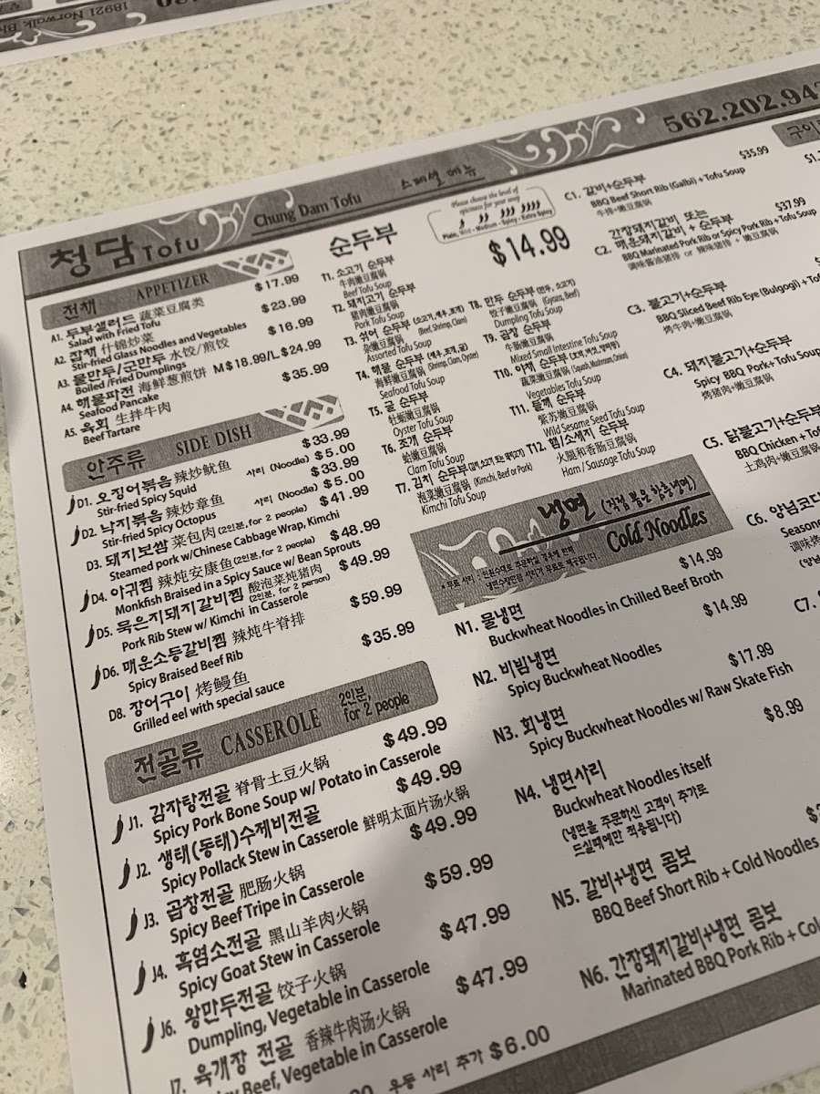 If you're looking for an authentic taste of Korean cuisine in Artesia, CA, look no further than Chung Dam Tofu. Nestled at 18921 Norwalk Blvd, this charming restaurant is not only a gathering spot for locals but also a go-to destination for anyone longing for the savory, bold flavors synonymous with Korean fare.